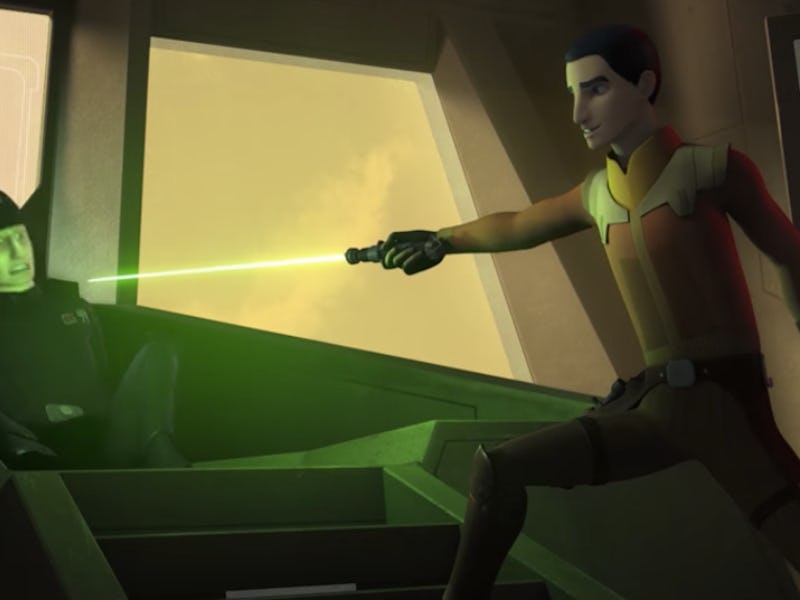 At the end Rebels’s last season, Ezra obtained a Sith Holocron: a semi-sentient device containing teachings and “wisdom” of the Sith. In one new clip, Ezra is being urged by a voice in the Holocron to channel his anger to make himself more powerful. The takeaway here is this: Ezra now believes the dark side of the Force can help him protect his friends. Since being separated from his parents and weathering multiple hardships throughout all of Rebels, it makes sense that Ezra — like Anakin Skywalker before him — would want to become powerful enough in the Force to prevent anyone he cares about from dying.