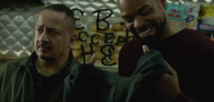 Method Man, a long-time Marvel fan, officially exists in the MCU. A new trailer for Luke Cage shows our hero walking into a bodega to stop a robbery, and it just so happens that Method Man is chilling by the bagels. The men recognize each other, hug, and Luke switches hoodies with Method Man, presumably to hide the fact that he’s been riddled with bullets.