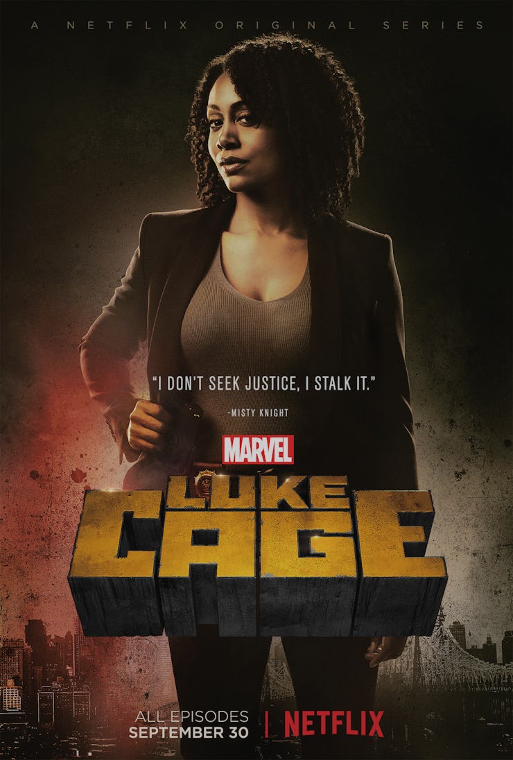 Misty Knight debuts in the Marvel Cinematic Universe in Luke Cage on Netflix. Knight is an NYPD detective that investigates reports of a Harlem hero — Mike Colter’s Luke Cage. She dates Cage in the series and in the comics, although Cage eventually marries Jessica Jones in the latter source.