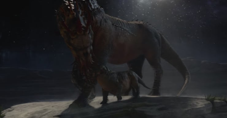 The Graphorn we see in the Fantastic Beasts trailer is a little different from the beast described in the book, though. It does have the described “greyish purple” skin, but it lacks a distinctly humped back and has more than the described two horns. Instead, we see a bevy of horns on its head (though they are long and sharp, as described), along with clear ridges along its back.