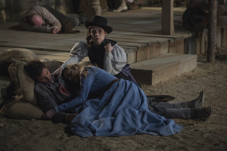 We hear this command several times — Anthony Hopkins’s Dr. Robert Ford says it to the cowboy-robot in his introductory basement scene, and Shannon Woodward’s Elise later says it to Dolores. Elise seems overly tender towards the robots, even going so far as to kiss one and wearing a Western costume, for some reason, later in the episode. Thus the first half of her speech seems to be an add-on. “Deep and Dreamless Slumber” are the key words.