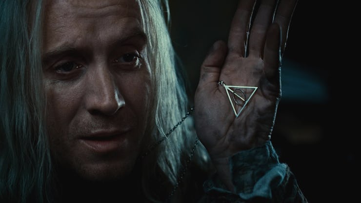 Why this symbol is showing up in the context of Graves is unclear. Is this the very same necklace we saw around the neck of Luna’s father, Xenophilius Lovegood, in the Deathly Hallows? If so, how the hell did Lovegood get ahold of it over half a century later? And if it’s not the same necklace, why are there a bunch of Deathly Hallows necklaces floating around? And what purpose do they serve?