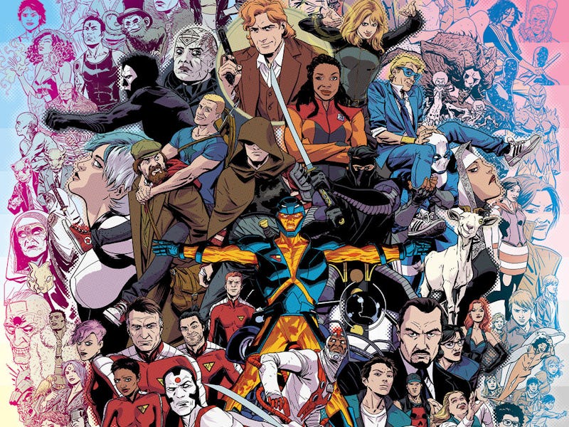 Cover of 'The Valiant Handbook of 2016,' showing off the company's eccentric heroes.
