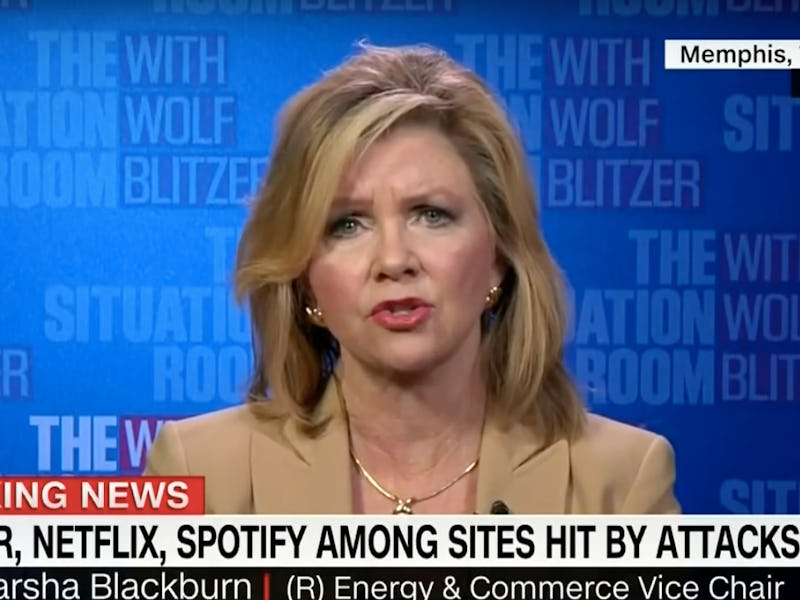 As cybersecurity experts scrambled to restore service to sites brought down by the DDoS attack on Dyn’s hosting service Friday, America’s politicians continued dutifully pretending to understand how the “cyber” works. Representative Marsha Blackburn (R-Tennessee), a member of the Senate’s Communications and Technology Subcommittee, went on CNN to shed some light on the issue.