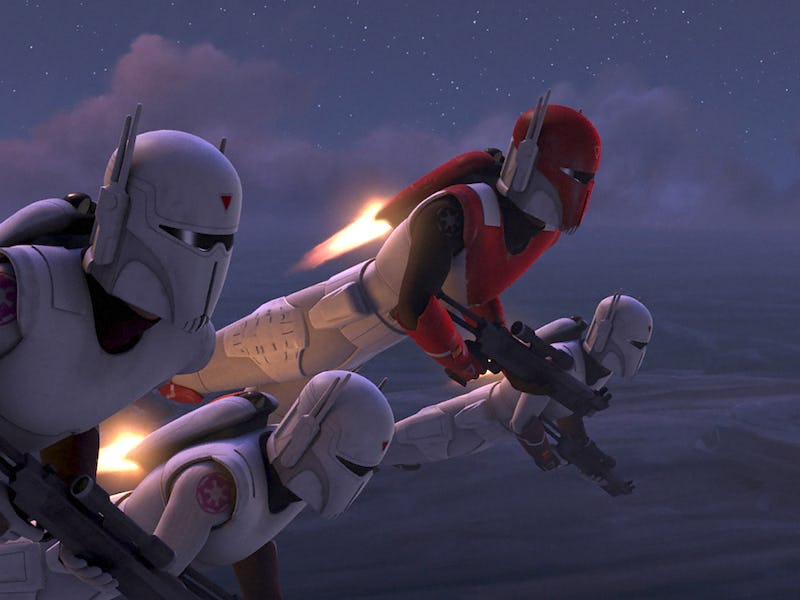 While it looks like we’ll now understand how the majority of the Mandalorians hooked up with the Empire, this still doesn’t explain why more stormtroopers don’t rock jetpacks. We also don’t know how the heroic Mandalorian warrior Bo-Katan figures into all of this, but we’re betting she’ll probably side with Sabine.