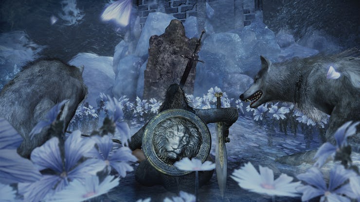 Like the Onyx Blade, Valorheart is a weapon obtained from killing one of the new NPCs located with the Painted World of Ariandel. To locate the optional boss that drops it, you’ll have to navigate down through the same roots you did to find the Follower Sabre. This time go all the way down to the bottom and search for a massive open area covered with flowers. Approach the ruins to trigger the boss fight with the Champion’s Gravetender and Gravetender Greatwolf, who will drop the weapon when defeated.