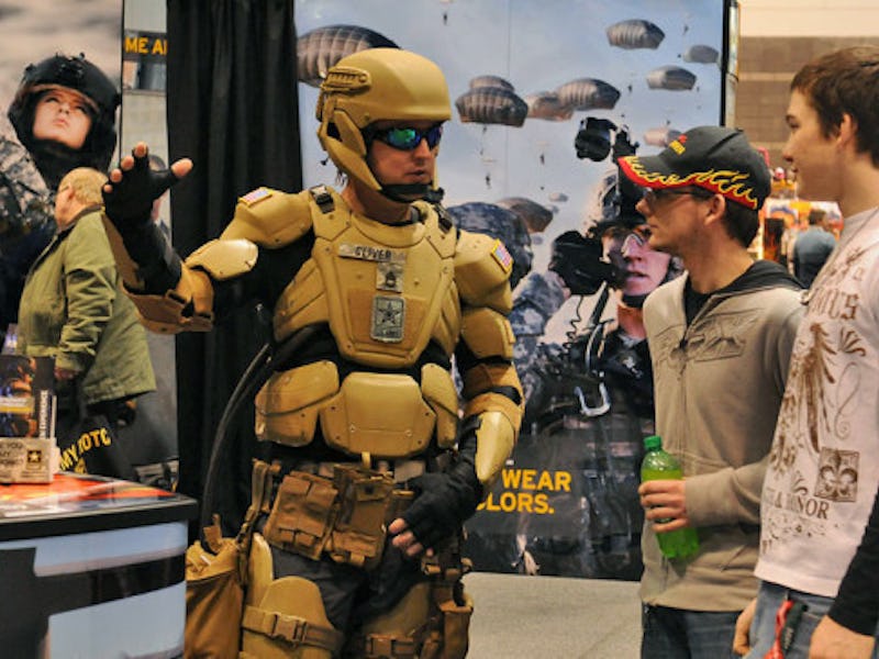 The army’s suit aims to serve several roles at once, with a wealth of sensors providing stats on body temperature, heart rate, position, hydration and more. The body armor can also transform from liquid to solid, allowing the user to wear the suit comfortably outside of combat, while switching back when needed. “The idea is to help maintain the survivability of operators as they enter that first breach through the door,” said Allen.