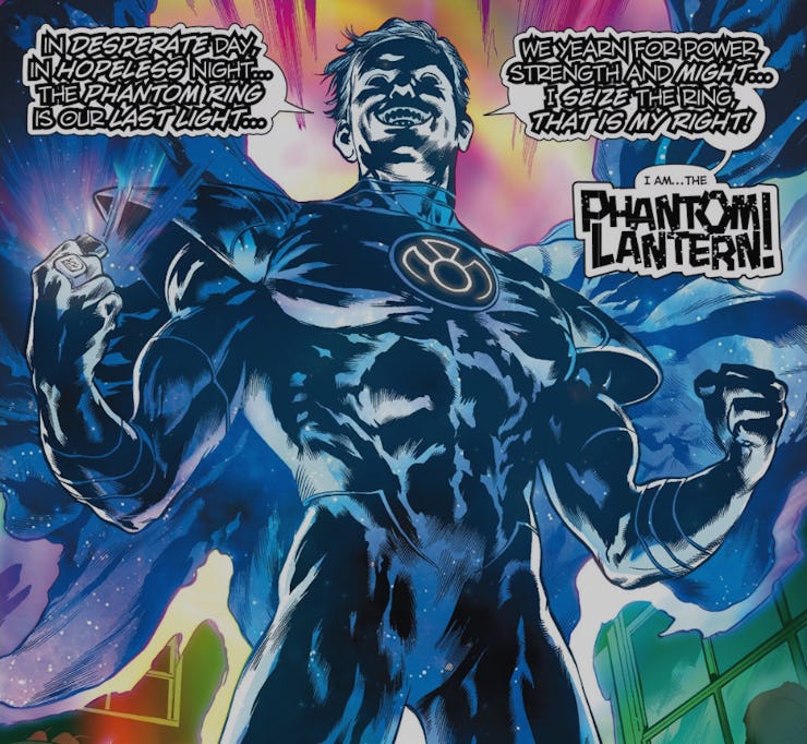 Laminsk’s debuted in writer Sam Humphries’s Green Lanterns issue #9. And in issue #10, his story takes a shadowy twist when he gets his hands on Volthoom’s Phantom Lantern ring, which allows anyone, anyone to wield and channel any color Lantern depending on their mood. Frank’s oath as a Phantom Lantern is not only badass, but an echo of his character as an obsessed fanboy yearning to become something more no matter the cost.