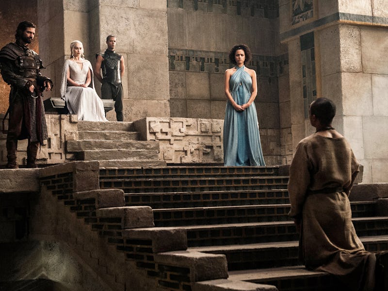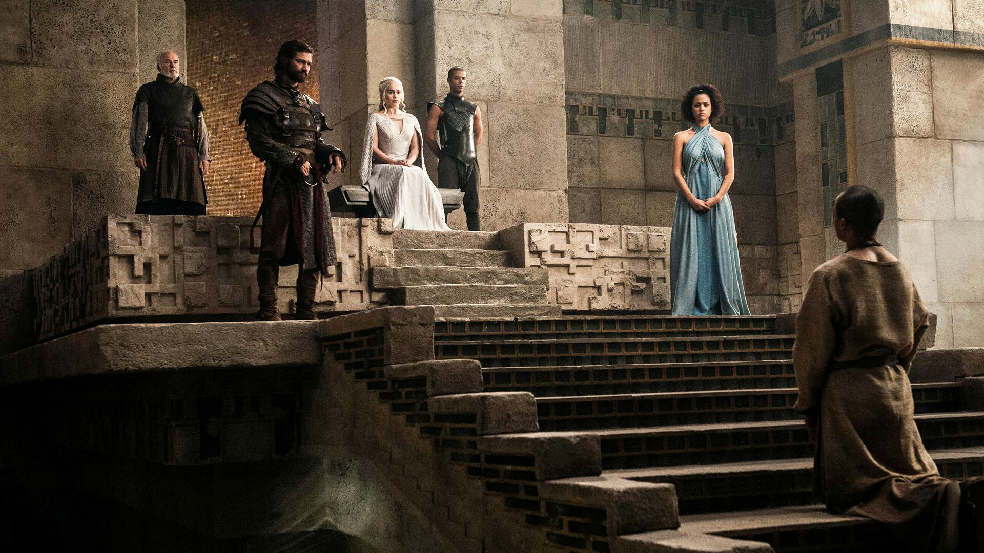 On the other hand, Dany’s new Dragonstone throne hints at just how much the Queen of Dragons is different from Queen Cersei. Unlike the Iron Throne, a man-made creation built out of thousands of blades, the Dragonstone throne is literally carved out of the rock formations. It shows how connected Dany is to her home and the people she wants to rule. Queen Cersei is completely cut off from her people (she’s literally sitting on a throne of swords), but Daenerys yearns to be a part of her kingdom. Also digging the silver embellishments on the Dragonstone throne, a friendly reminder that winter’s on the way. Also maybe an Ice Dragon.