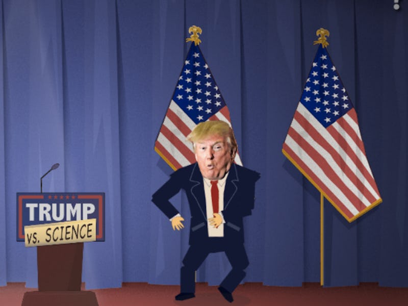 The crazy-baseless claims Donald Trump has made about climate change have suggested a terrifying future for science policy in the United States, leaving the science-respecting community feeling very frustrated indeed. Sensing the need for these people to let off some steam, Finland’s Pyson Games has created an online game called “Trump vs. Science,” which allows irate science lovers to pelt planets at the president-elect as punishment for his adherence to a completely irrational ideology.