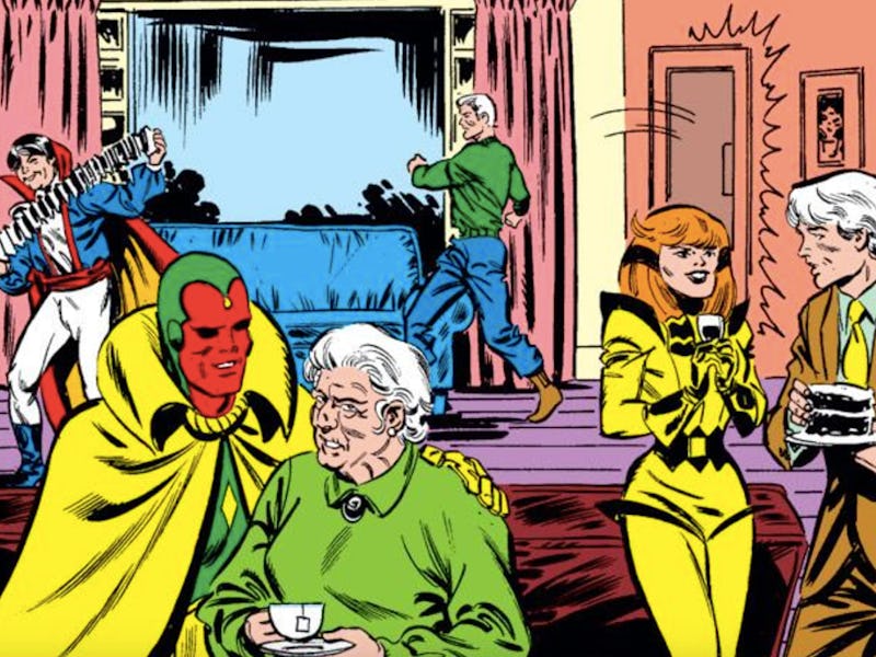 In a still stranger Thanksgiving issue of Vision and the Scarlet Witch, the Avenger couple — one being a synthetic human and the other an experimented-on Russian mutant. Much of the comic feels self-aware — there are several jokes about everyone’s costumes and whether Doctor Strange will deliver female Avengers’ babies (he will, apparently). Eventually, though, Magneto shows up in plainclothes, greeting his daughter, Scarlet Witch, and the Avengers and X-Men react thusly: