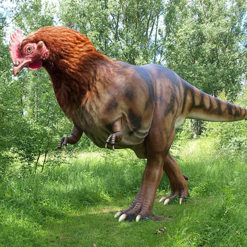 Birds aren’t just the closest living relatives of dinosaurs — they are dinosaurs. The term “dinosaur” defines a very large group of animals with a huge diversity of traits that all descended from a common ancestor and ruled the world for many millions of years. A short history lesson: After the asteroid hit, almost all of them died out. But not all of them. Some dinosaurs — little things with wings and feathers and beaks — made it out OK, and from them, over 65 million years, emerged the 20,000 species of bird that call Planet Earth home today. If you could trace a chicken’s genetic ancestry back far enough, you’ll get that looks very much like the dinosaurs of our fossil record and of our imaginations.
