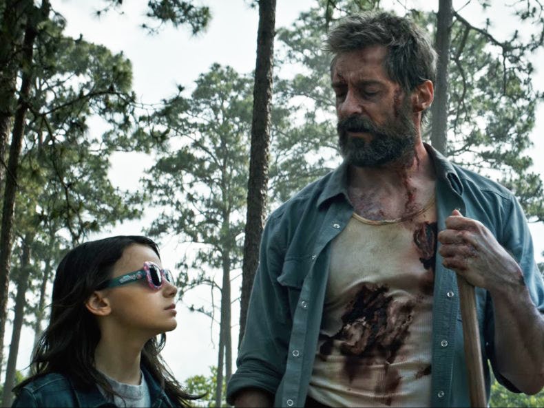 Logan for his part is appropriately bloodied, with his tank top in bloody tatters and the shadow of a corpse behind the two. Given the fact that both director James Mangold and Hugh Jackman have gone on record to explain that the tone of the film will be mature with a capital “M,” this scene feels particularly natural.