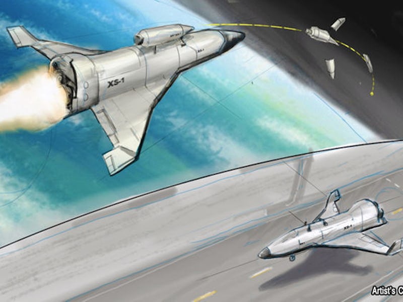 XS-1 has four primary directives: to fly 10 times in a 10-day period; to achieve a high enough velocity to implement a small, expendable upper stage; to demonstrate responsiveness via launch of a payload between 900 and 1,500 lbs; and to do all this for around the (reasonably low) price of $5 million per flight.