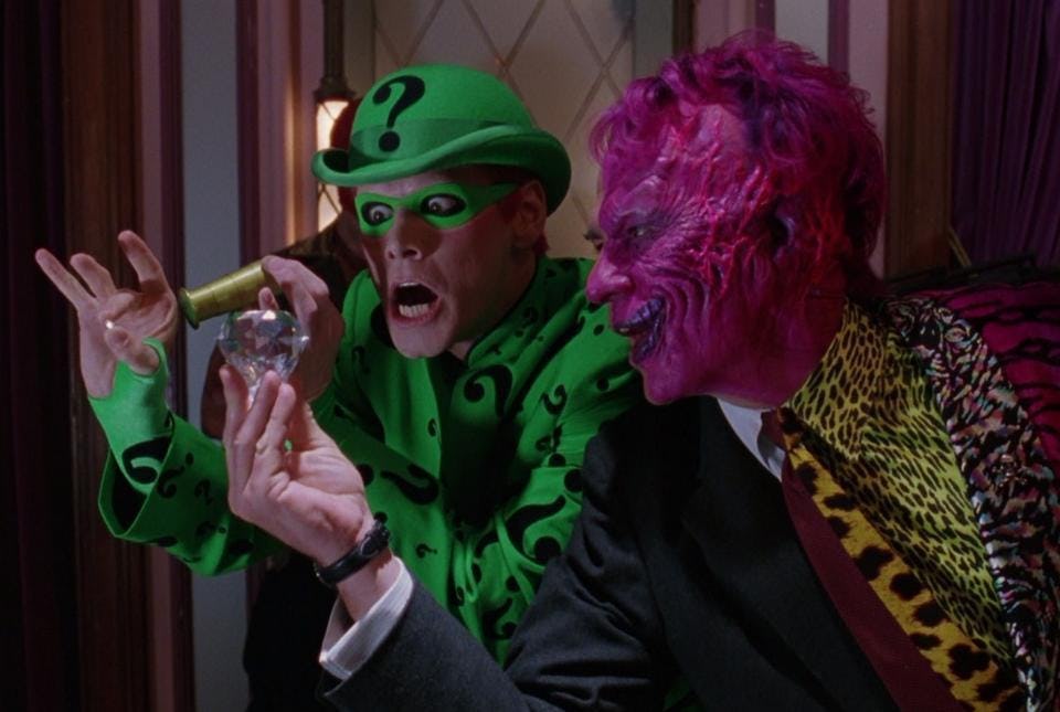 Batman Forever was the Val Kilmer starring Batman film which featured Tommy Lee Jones as Two-Face, and more memorably, Jim Carrey as the Riddler. The film was more-or-less what you’d expect from a Schumacher Batman film, with crazy neon lights, hammy Jim Carrey playing the Joker via the Riddler, and a gangster-like Two-Face who looks more like a rave demon than a career criminal. But now watch the film with a little Daft Punk and see how it changes.