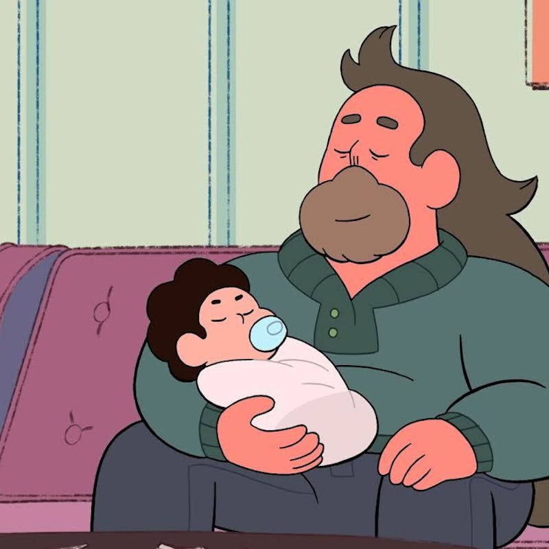 Every Steven Universe fan has shed tears over the show’s heartbreaking and often cathartic musical numbers. Rebecca Sugar has a knack for using music to help her audience process difficult emotions, like guilt (“Here Comes a Thought”), jealousy (“It’s Over Isn’t It”), and worthlessness (“Do It For Her”) without judgement, allowing fans to accept their own faults and grow with the characters. The final episode of 2016, “Three Gems And A Baby”, features another standout song called “I Could Never Be (Ready)” in which Steven’s father, Greg Universe (Tom Scharpling) tries to grapple with raising a newborn immediately after losing his partner, Rose Quartz.