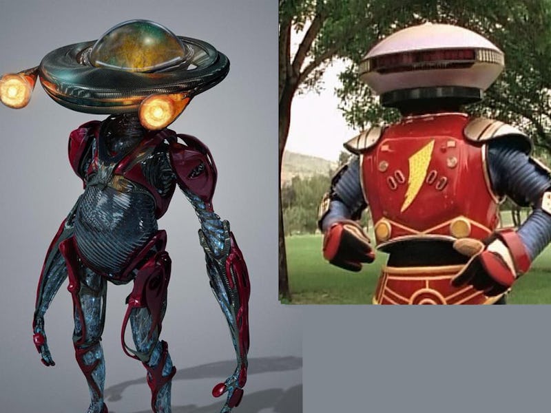 The Rangers’ new suits and Zords have hints of futuristic biomechanical alien technology to them, but Alpha 5 seems like he was version 1.0. Dude looks like the result of a bad teleporter accident involving a mushroom, Steven Speilberg’s ET, and the Starship Enterprise. And then, after they all got fused together, they suffered severe, flesh-melting burns.