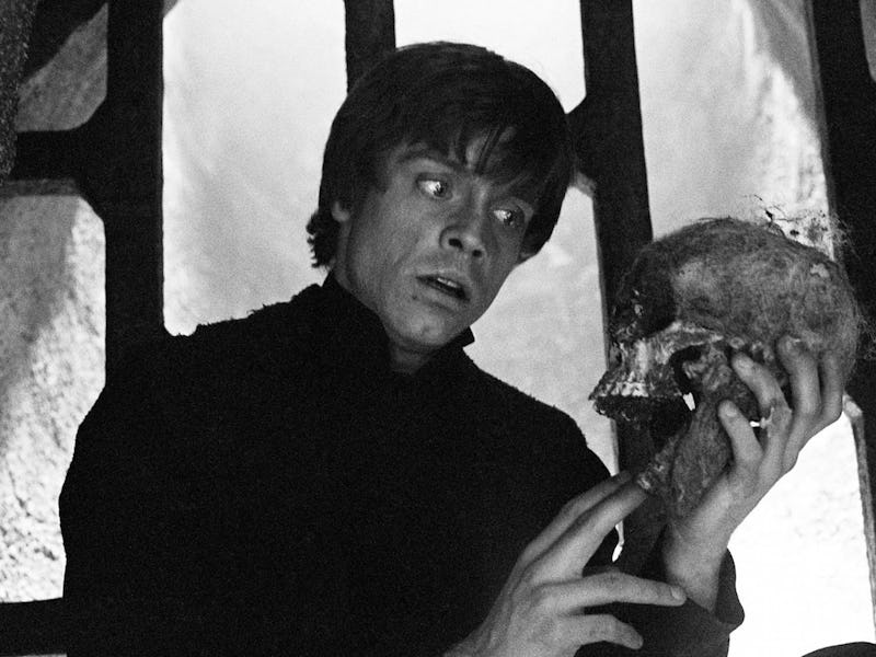 Finally, there’s the most recent Hamlet-esque Star Wars moment: Kylo Ren talking to the head/helmet of his grandfather, Darth Vader. Behind-the-scenes reports suggested this scenes was initially shot of Adam Driver without his helmet, meaning his Kylo helmet had to be digitally inserted later.