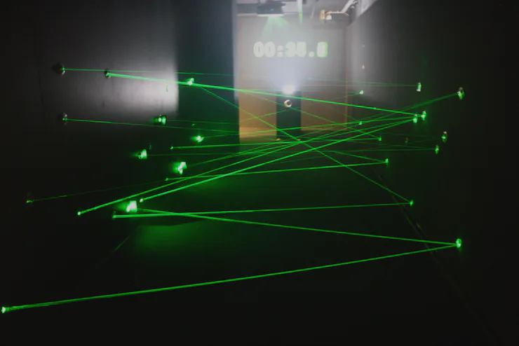 Typical laser beams are produced by exciting electrons and making them oscillate. To do that, light is focused into a very precise point, concentrating the energy and producing something that can be used for, say, reading the data on a DVD or trying to get Mr. Bond to talk.