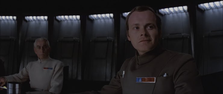 In a rather staid part of George Lucas’s otherwise exciting original 1977 film, a handful of Imperial senators and generals — including Grand Moff Tarkin and Darth Vader — sit around a starkly lit black conference table bickering about the Empire’s newest superweapon, the Death Star. It’s an easy scene to forget since Lucas’s dynamic visual style is much more memorable than any of the dialogue, save for the lines that became iconic. Also, as a kid watching Star Wars, all you really want is to see Luke Skywalker go on his adventure of self-discovery, not a room of bad guys talking bureaucracy to each other.
