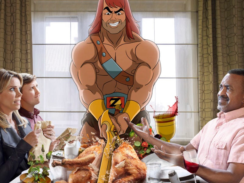 If anything, Son of Zorn needs more of the animation. Zephyria has become gradually more specific and developed over the course of the season, and “The War On Grafelnik” introduces a Zephyrian holiday that coincides with Christmas but celebrates revenge. Like most Son of Zorn gags, it gets hit pretty hard on the head: Grafelnik snowballs are just rocks and a typical Grafelnik greeting is a hard punch to the face. But other than one-off jokes — like the scary costume Zorn sports in the beginning of the episode — there’s no other visuals to flesh out the concept of Grafelnik. Son of Zorn doesn’t make enough use of its otherworldly aspects, and only uses Zephyrian artifacts and creatures when it’s convenient with the plot instead of letting them disturb and distort this world in a more organic way.