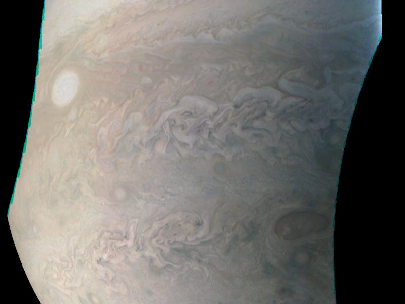 Juno captured the photograph shortly after midnight on December 11 with its aptly named JunoCam. The device is a visible-light camera that’s intended to snag shots of Jupiter’s poles and clouds. NASA says that the photographs aren’t especially helpful to scientists who are studying the planet (Juno has a host of specialized instruments for the heavy science), but the pictures are a stunning way to share Jupiter’s beauty with the public.
