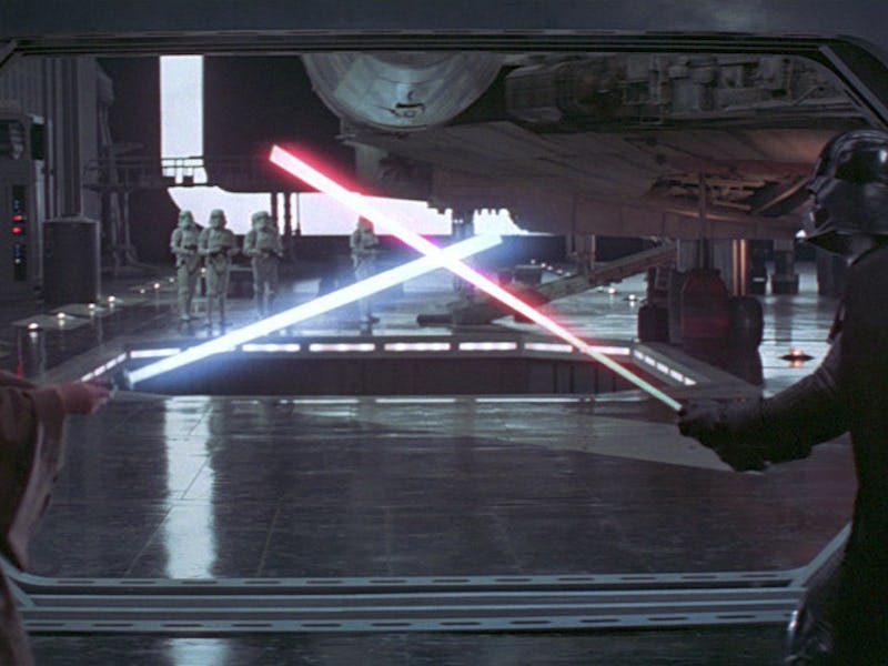 It is a surprisingly brief scene, but its here where we realize that lightsabers aren’t the ubiquitous weapon bandied about in George Lucas’s prequels. It’s not just the fact that The Phantom Menace had more Jedi and consequently more lightsabers, it’s that we lost the concept of a lightsaber being a sacred and elegant weapon altogether. They’re weapons that lost their luster after being used too much as the cool must-have toy/trinket/gadget for every Jedi, Sith, and fan thereof. Once the lightsaber was not only ubiquitous in every Star Wars movie, but also in every fan’s home, the weapon of considerable power began to feel like part of a requisite school supply list, or Star Wars starter pack. Darth Mauls double-edged lightsaber might have been a “Holy Shit!” moment but by the time we got to Obi-Wan dispatching a four-saber-wielding General Grievous in Revenge of the Sith, the power of the lightsaber was seemingly limitless and subsequently laughable.