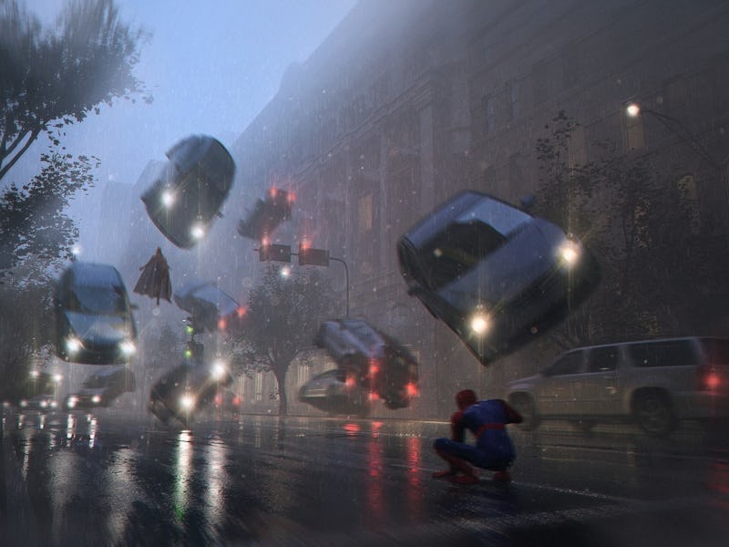 Taking place in a rainy, presumably New York City, street, Magneto and Spider-Man face-off with the webcrawler looking particularly small compared to Magneto’s imminent barrage of cars and metal. It’s almost a shame this scene might not happen in the films anytime soon.
