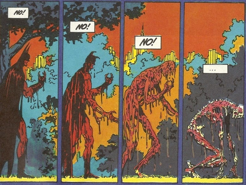 Though Bruce Wayne is a grizzled adult in The Cult, the Shaman’s mind-bending, hallucinatory tactics cut him down into an adolescent. He’s a psychological torture fiend similar to the Court of Owls, and when Bruce allows him access to his psyche, the Shaman all but destroys him from the inside. In The Cult, it’s Robin who saves Batman, but in Gotham, that role could end up being Jim Gordon’s next plot point.