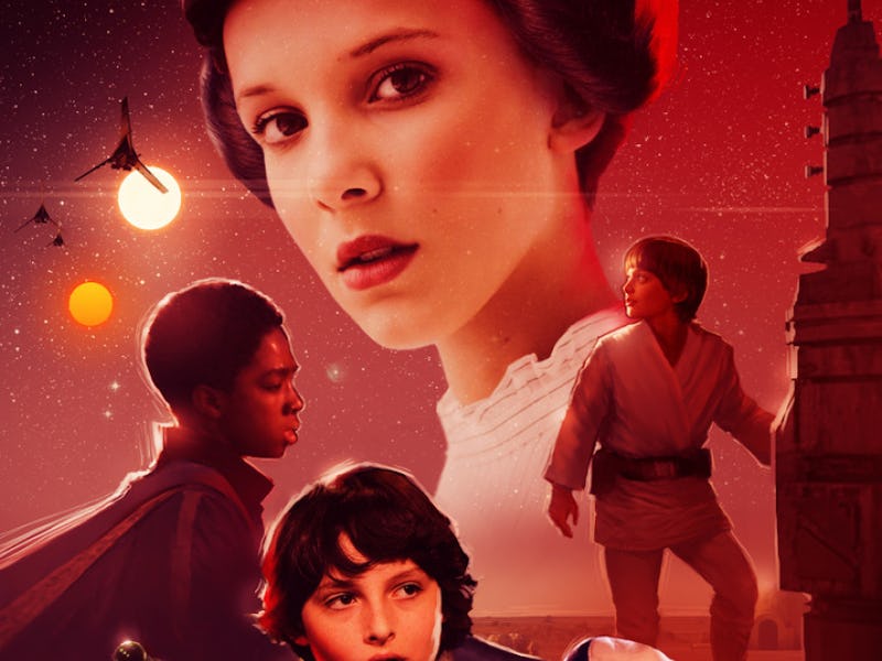 Maher’s illustration shows every kid cast member from Stranger Things as a character from Star Wars, and they all match up pretty well, even if all of them appearing in the same film at their age would seriously mess with the overall Star Wars timeline. Finn Wolfhard as Han, Gaten Matarazzo as Chewie, and Noah Schnapp as Luke are a nice touch. Actor Caleb McLaughlin as a tween-age Lando is actually so good that hopefully Han Solo standalone movie directors Phil Lord and Chris Miller see this and make that happen.