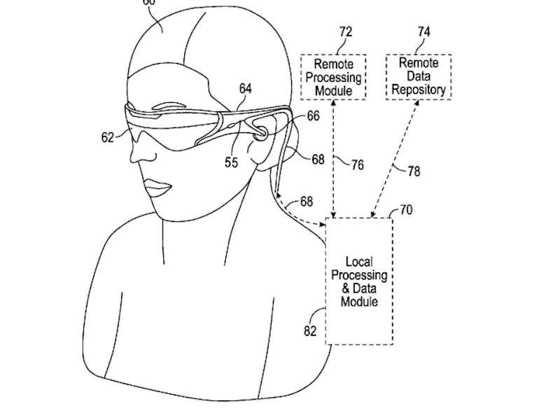 The patent shows an augmented reality device that can be used to diagnose and treat eye issues, specifically color blindness.