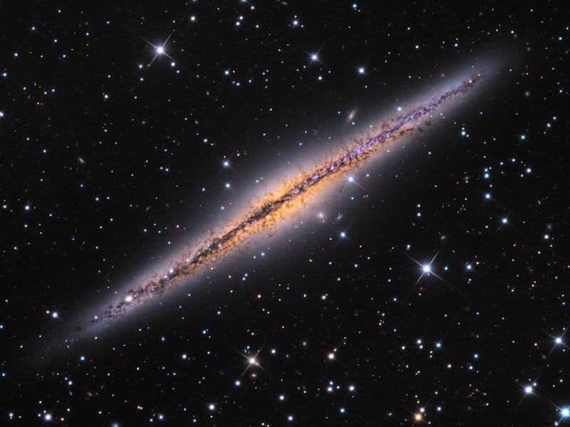 Here’s your introduction to NGC 891, a belt-like strip of stars compressed into a spiral galaxy that is actually much like our very own Milky Way. The image here, snapped by a student at the University of Arizona’s Mt. Lemmon SkyCenter, actually helps illustrate how NGC 891 is something of an evil twin to the Milky Way.