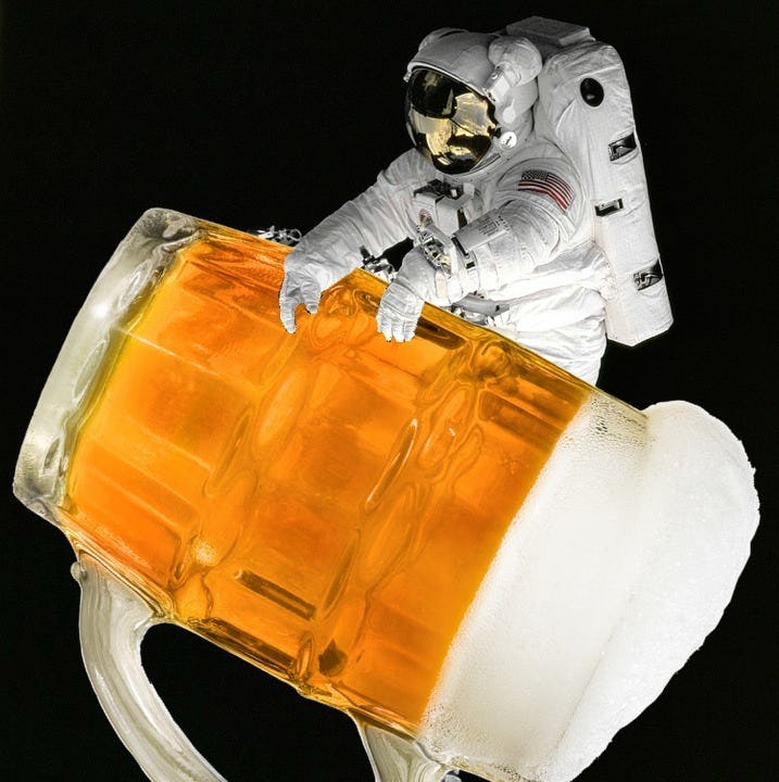 Not only will the beer not brew properly in space — it won’t even be digestible. Just as bubbles rise in a cup, they also rise in your stomach, producing gas and, consequently, burping contests across Earth-bound frat houses.