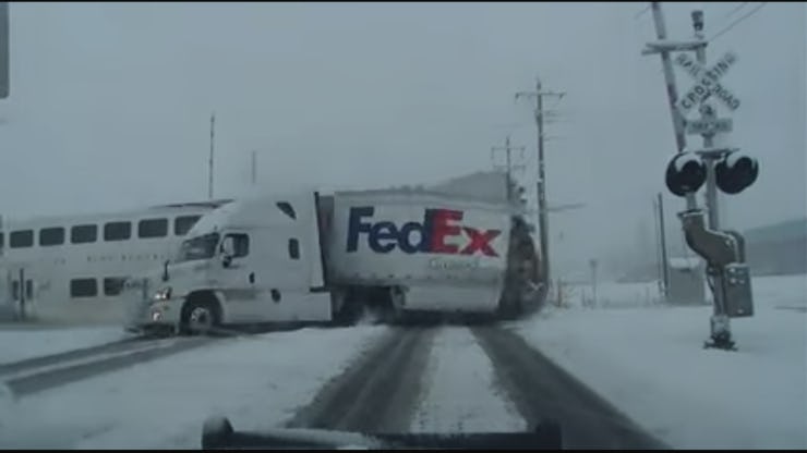 According to the Salt Lake City Tribune, there were no serious injuries in the crash (except a few hundred totally screwed packages), but FedEx is definitely going to need a new truck. The Utah Transit Authority is trying to figure out why the crash happened, as the dramatic dashcam footage released today clearly shows that the railroad’s crossing lights and barriers were not functioning when the train blew through the truck.
