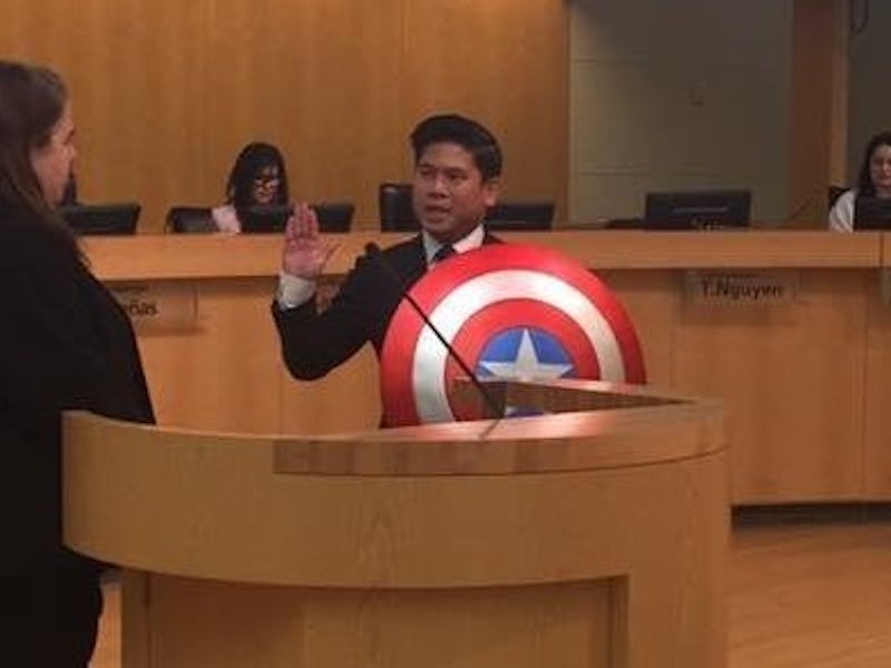 California Councilman Lan Diep believes that government “can be fun,” and you should too. That’s why, rather than be sworn in with his right hand over a Bible, he opted to wield the star-spangled shield of Captain America in a move that aims to please. “I’m not above creating a bit of spectacle if it helps people pay more attention to local government.” When it comes to that vibranium shield, Chris Evans may not “deserve it” anymore, but Lan Diep sure does.