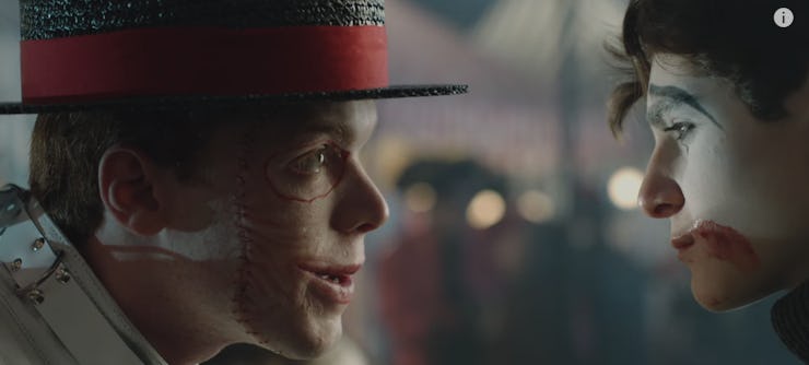 Jerome lives on Gotham, but only after stapling his own face back to his head. In a new “white band” trailer for Gotham, Jerome’s return as the Joker (or at least Joker-like villain), we see Jerome return to the city with his old face and Bruce Wayne as his hostage.