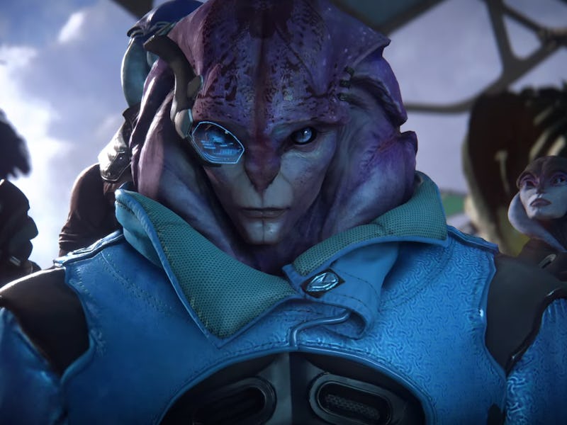 Little is known about this new alien race, which apparently sports similar colorations (shades of purple and blue) and head grooves as the Asari while having bovine legs like the Krogans and Salarians. They also appear quite sturdy and broad, though they’re obviously much smaller than even the tiniest of Krogans. Some of them sport similar tech monocles to what Garrus Vakarian brandished in the original Mass Effect series. It’s also worth noting that one of the Angara in the background looks surprisingly similar to a Twi’lek from the Star Wars universe.