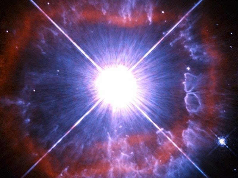 A little thing in outer space known as AG Carinae is one of the brightest objects ever observed. That’s saying a lot for a universe that has about one billion trillion stars and counting. But this particular star is so bright, scientists can’t even visualize it. The extreme glare coming from this Hubble Space Telescope image completely shrouds the star itself — a small pinpoint compared to the monstrous light it gives off. The criss-cross pattern is also just a glare-like effect caused by the telescope.