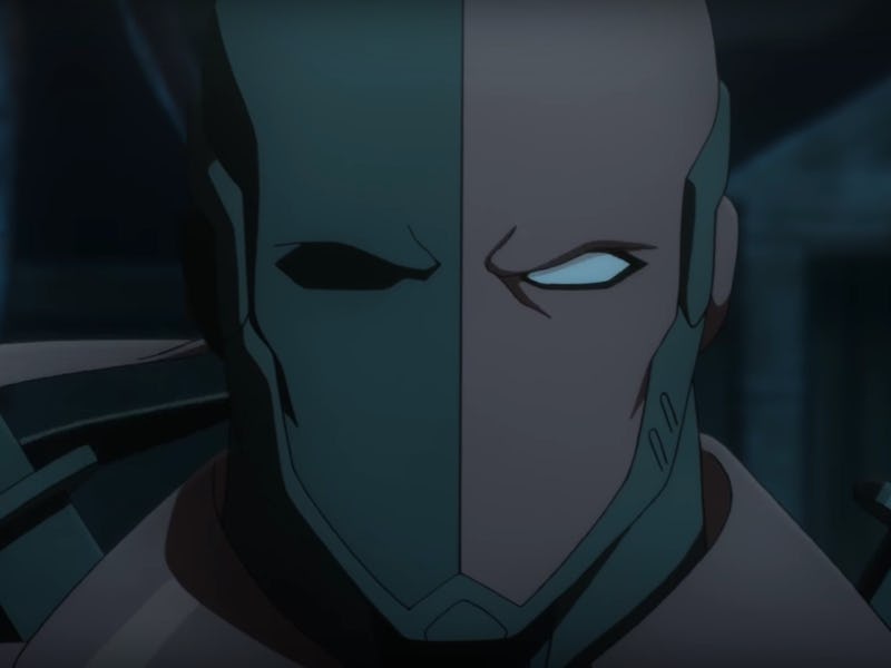 For Slade Wilson, a job is a job. He’ll kill anybody as long as he’s paid, and in the new animated film Teen Titans: The Judas Contract, Slade’s paid to kill the Teen Titans. An adaptation of the cult classic 1984 Teen Titans arc “The Judas Contract” by Marv Wolfman and George Pérez, the new animated feature loosely adapts the story with Brother Blood hiring Deathstroke to capture the Teen Titans for, well, bad guy purposes. And Deathstroke pulls no punches in his efforts to get the Teen Titans, going so far as to blow up Dick Grayson at point blank range.