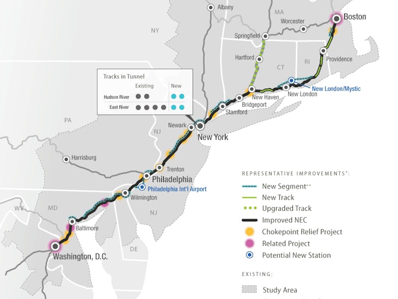 NEC Future, the team behind the plan, was set up in February 2012 by the Federal Road Administration to decide how best to upgrade the 457-mile corridor. The plan put forward in December would cost around $120 billion and cut through eight states.