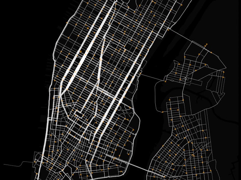 As Citi Bike data only shows where people rented and returned a bike, Schneider had to make some jumps to create “popular routes.” He used Google Maps’ bike directions to work out the best way from the start to end point, which isn’t necessarily the route renters are cycling. They may have taken a detour, for example, or didn’t use directions and chose less efficient routes.