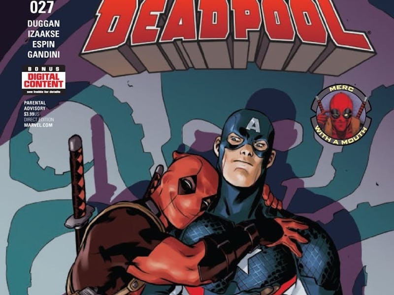 This week’s issue of Deadpool sees three superpowered individuals from the future — all dressed as Captain America — call out Steve Rogers to fight them on the steps of Washington D.C. The three strangers have returned from a future where the original Captain America, who is secretly a HYDRA agent, takes over the United States and imposes his tyrannical Secret Empire. In a sense, these three time travelers are actually the heroes of the story going back in time to kill a villainous Captain America and an unlucky Deadpool.