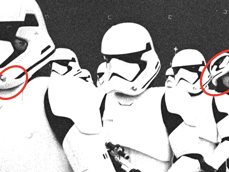 The First Order Stormtroopers in Star Wars: The Last Jedi may have a small upgrade. A new photo reveals that new stormtrooper helmets now have slightly different lines, a more pronounced little rounded-metal stud, and a narrower face plate, all presumably to assist with breathing while attacking Resistance scum.