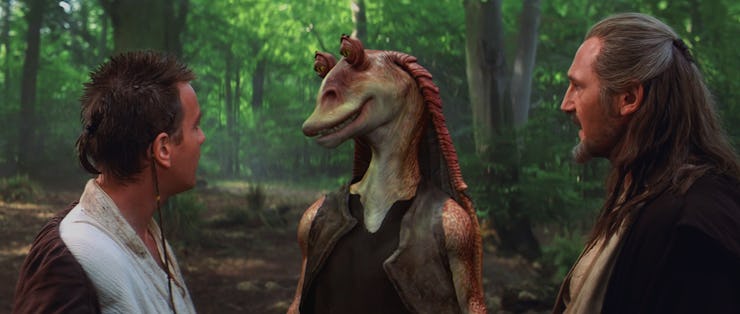 Mashable reported that a refugee boy named Mapo encounters a Gungan in a town on Naboo who introduces himself as the one and only Jar Jar.