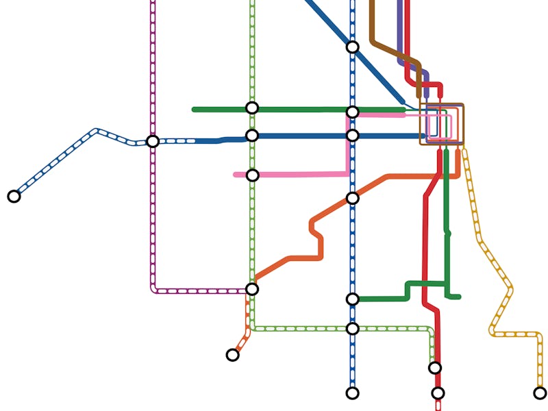 But Transit Future, a campaign started in 2014, places funding problems to the side and dares to dream about how Chicago’s metro could look. Funded by the Center for Neighborhood Technology and the Active Transportation Alliance, the project produced a metro map filled with extensions they think could transform Chicago.