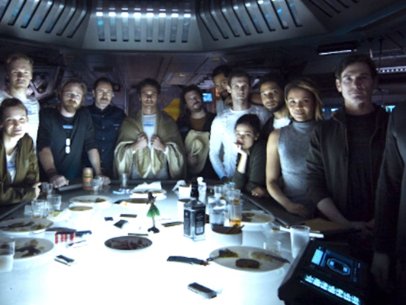 With twice the number of crew as the Prometheus and almost three times as many people as the Nostromo, the spaceship called Covenant is offering up a lot of human sacrifice to the titular alien in Alien: Covenant. A new photo from the film shows off a giant spaceship crew and the first glimpse of James Franco.