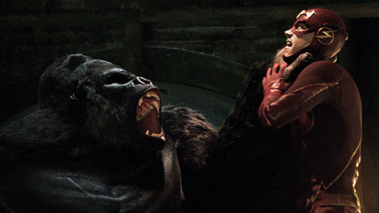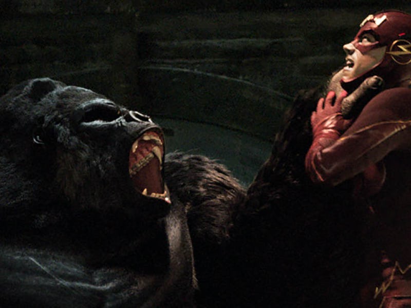 The Flash begins Part One of its “Gorilla City” event with a sweeping airborne shot of Grodd’s new home. The super intelligent creatures live in a monstrous stone city marked with giant gorilla statues, and at the center of the marketplace stands a colosseum. It’s an ambitious set piece for The CW’s second most fantastical superhero show — though Legends of Tomorrow is more outlandish, somehow the stakes on The Flash always feel higher.