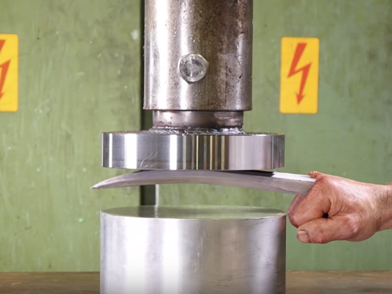 Of course, there are new alloys being developed each year — often alloys involving the metals above — that are said to be stronger than steel. Because they’re so new, however, it’s unlikely that Vuohensilta and the Logan marketing team managed to get their hands on any of them — or even, for that matter, enough inconel or pure titanium or tungsten to smash up for the purposes of this video. The much more probable scenario is that Vuohensilta isn’t being entirely truthful about the nature of his hydraulic press base, and it’s actually made up of a softer metal alloy (probably steel) than the claws used in the video.