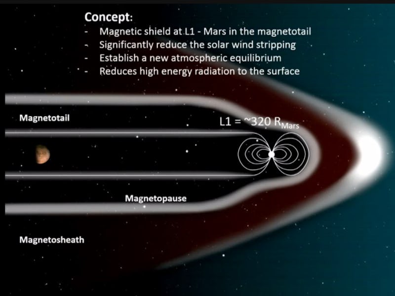 The Martian atmosphere is a decimated shred of what it once was, thanks to the fact that a disappearing magnetic field allowed solar winds to pummel the red planet’s skies over millions of years. So naturally, one solution to making Mars more habitable may be to resurrect its magnetosphere — and it’s a crazy idea NASA scientists are actually looking into.