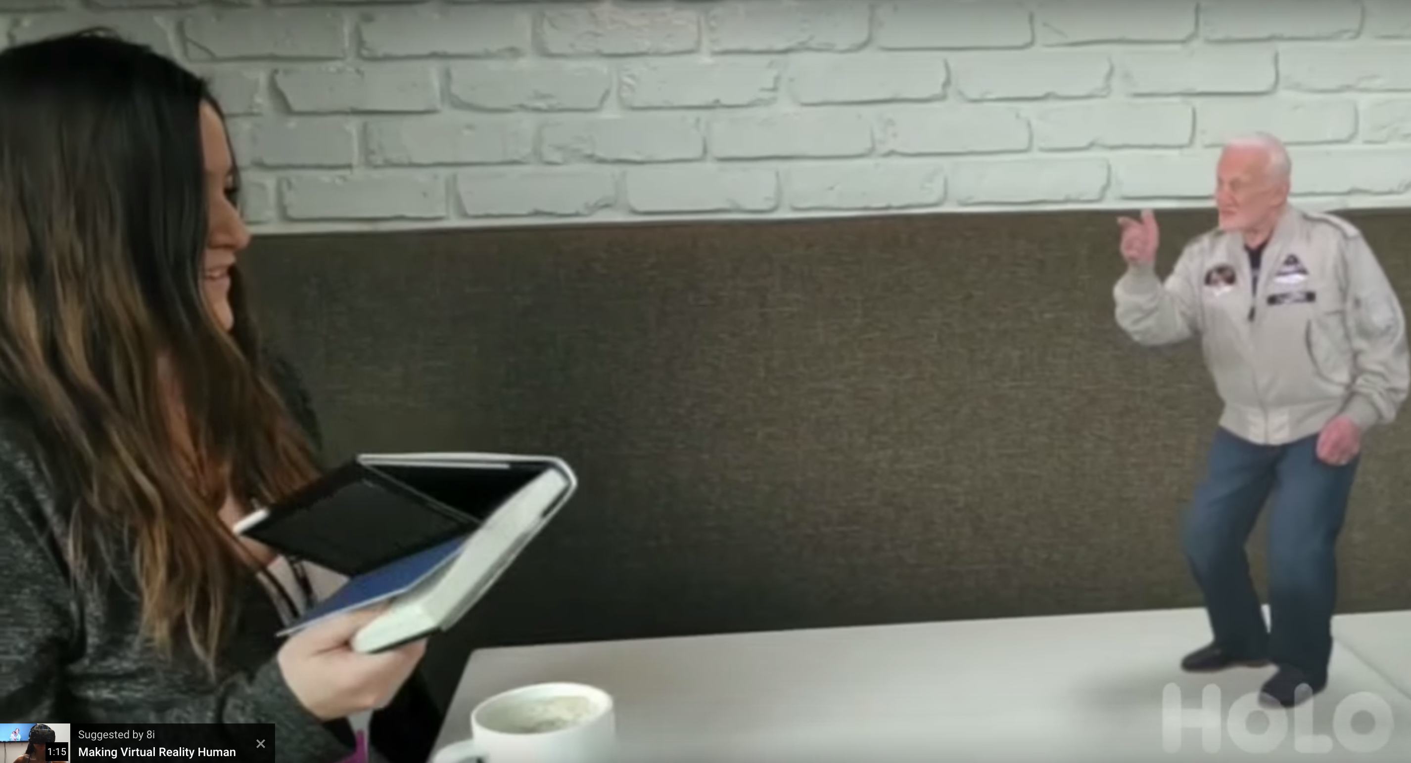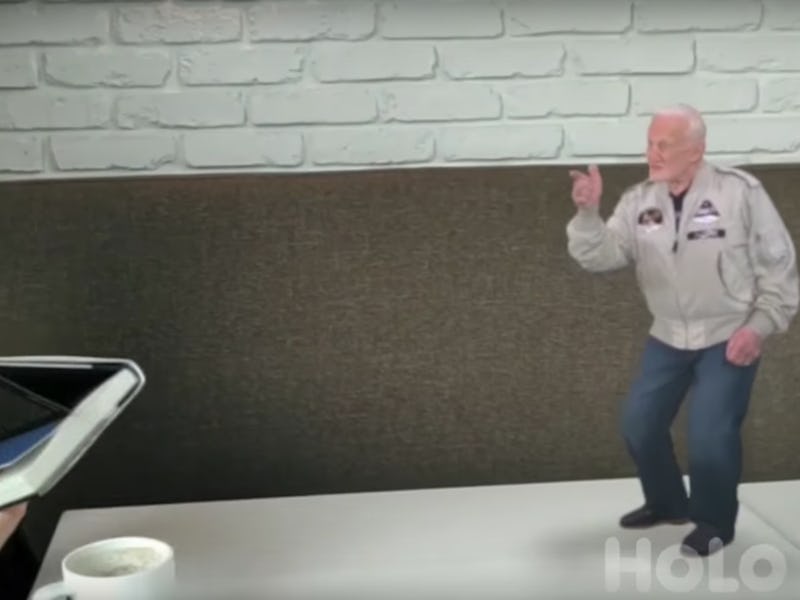At the Game Developers Conference from February 27 to March 3 in San Francisco, VR company 8i made a 3D hologram of Aldrin to greet attendees as they arrive. People could even take pictures with the former astronaut.